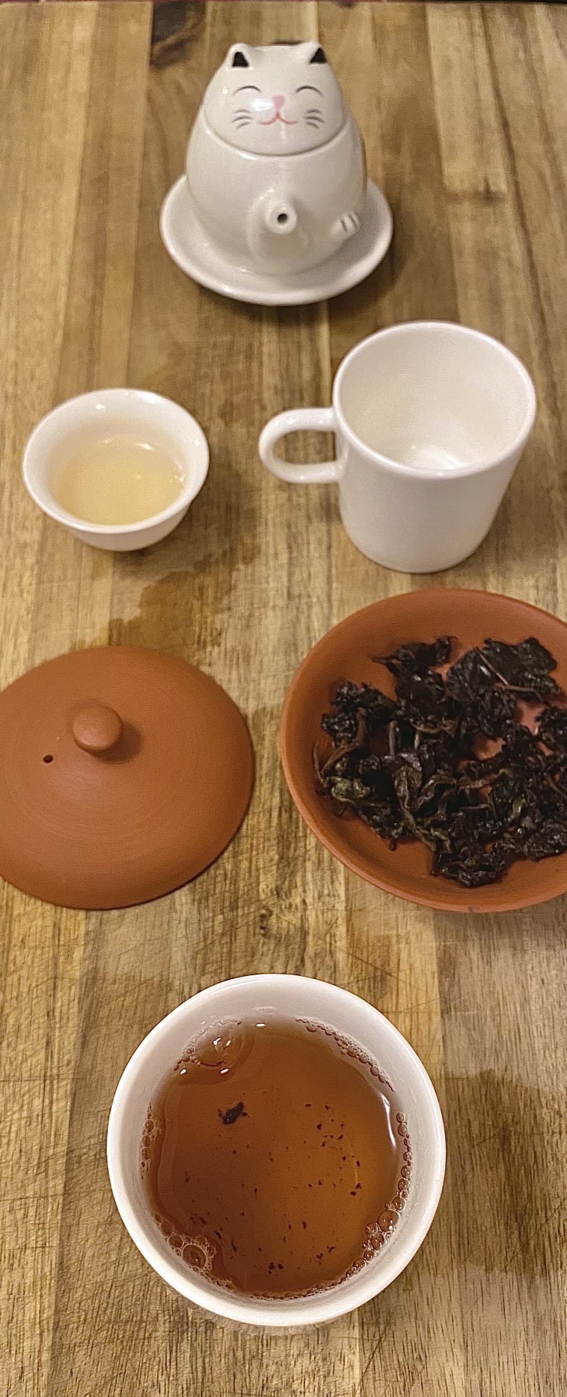 Today I have drinked some charcoal roasted bug-bitten Jin Xuan that I bought from 陳華胤 in 2016. I bought a few roasted teas from this fellow at the time. Tbh, I don’t really like roasted tea. But, he suggested I buy them, and I wanted some other greener stuff from him too, and so I bought them. They’ve mostly just been sitting around, mellowing out over the past five years.