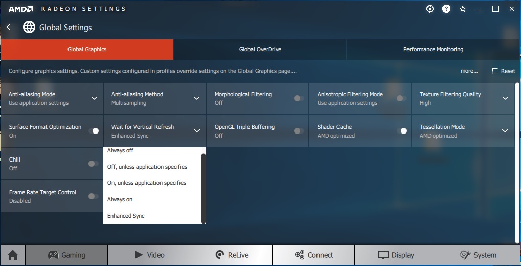 For AMD, its called “Enhanced Sync”. Its an improvedment over conventional V-sync, for regular montors. And still nets a significant drop in latency. And “Enhanced Sync” is not only for the newest cards. Here is a screenshot of my driver options, for a 7 year old Radeon HD7870: