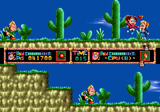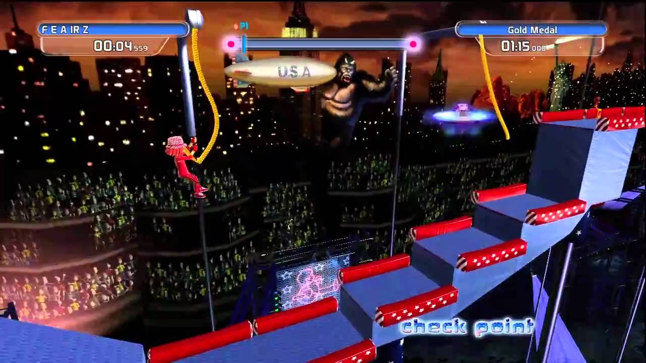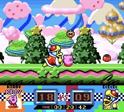 This is a bit of a technicality as it’s a game where player’s race through a side-scrolling platformer at the same time, but don’t face each other directly.