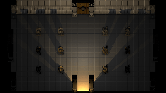 Iâm pretty happy w/ the magic aesthetics right now. Lightning is going to be fake screen burn with sparks like that. I might come up w/ multiple âlightning graphicsâ that all do the same thing under the hood. I think if I did itâd be something like 3 different lightning bolts. The âholyâ magic spells are all going to have rigid markings that have to deal w/ order and right angles and circles. Purely magic spells are probably going to be big white/pink lights and blue shadows like this.