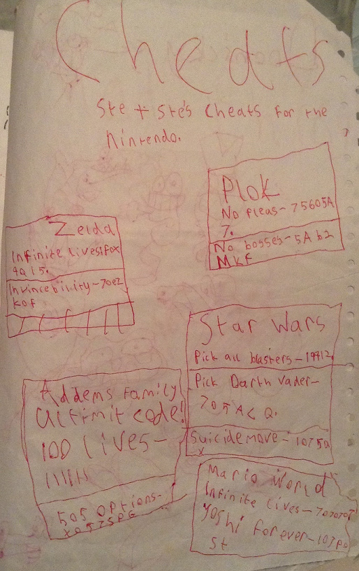 i ambiently read these a lot as a kid to the extent that me and a friend drew comics which had “cheatcode” pages full of absolutely spurious cheats, some for games i had only read about and some that were just wishful thinking (plok codes…)