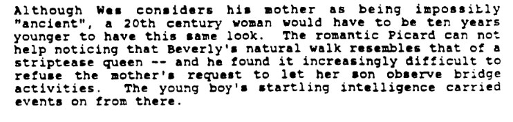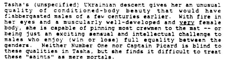 And holy smokes, I had never read those character descriptions before Sleezy mentioned Crusher’s walk a couple posts back. Those are not good.