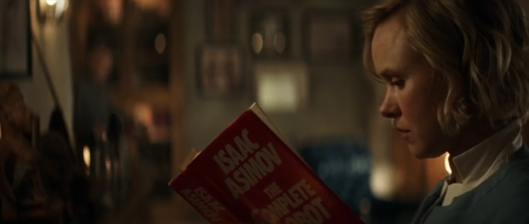 Scene opens with her READING AN ISAAC ASIMOV ROBOT BOOK