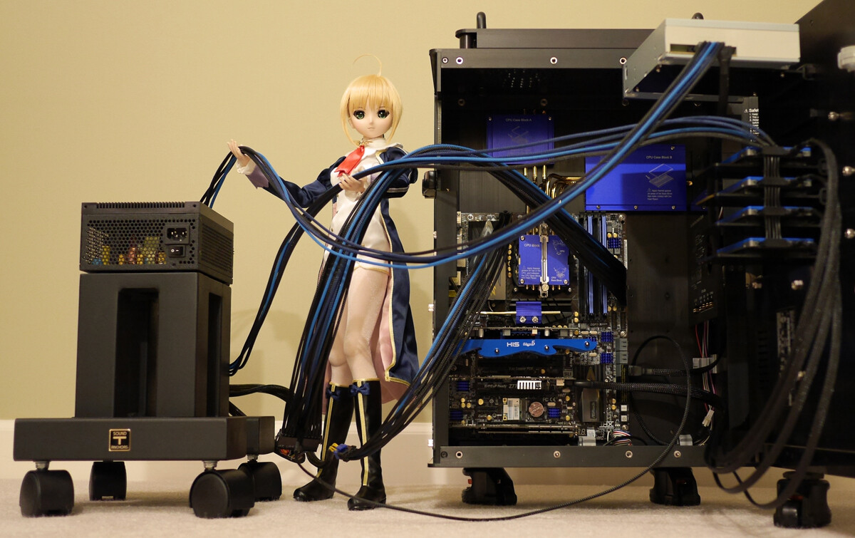 This monstrosity, this Frankenstein machine of random parts assembled together, this computer with an 8 year old CPU runs some multiplats better than my PS4. And all I had to do was spend hundreds of dollars over the years on now redundant hardware and take some time to actually put the thing together. It’s fun! Especially the part where I found out the GPU’s fans will spin up dynamically if, say, a cable was preventing the other one from spinning up. Which was nice, if not loud as fuck.
