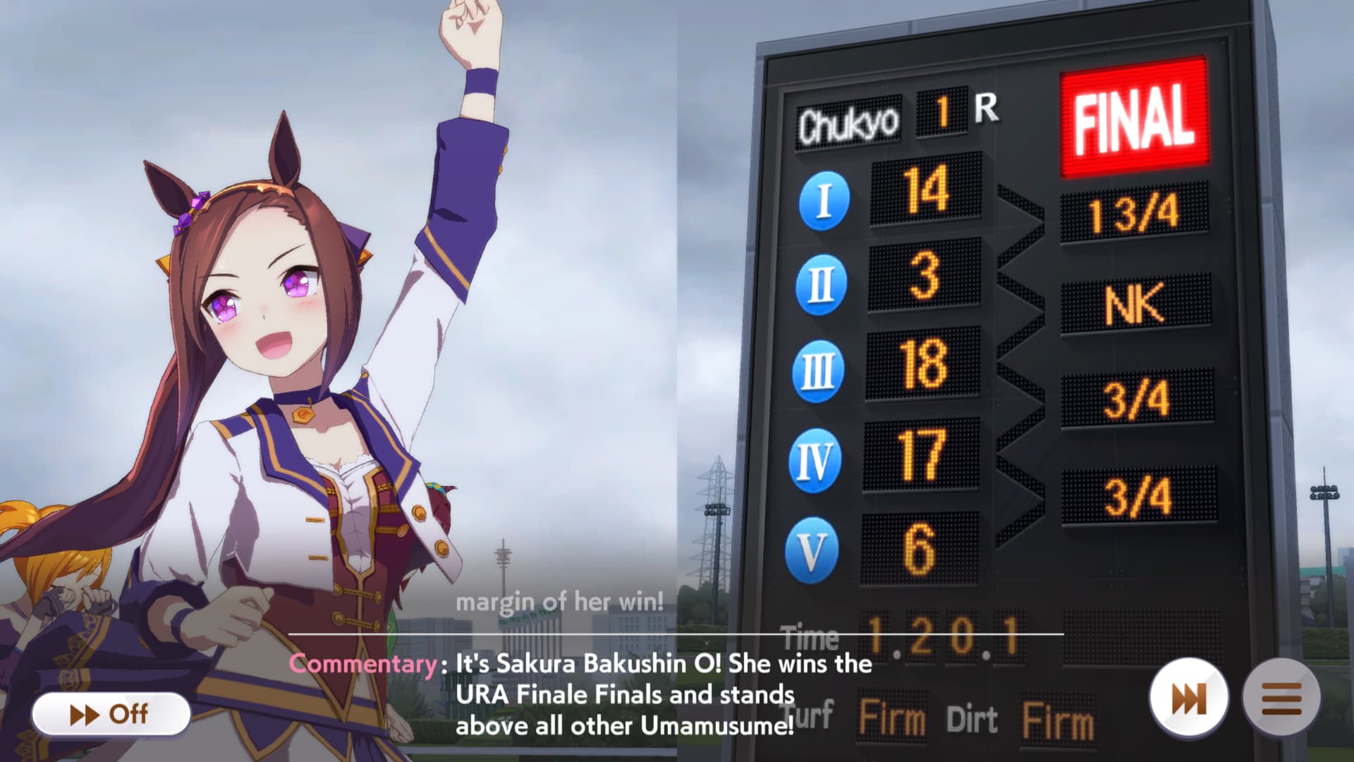 In honor of pulling this block of plastic I did a Winning Ticket run, in which she had the incredible ability to place 1 below the spot she should take every single race. What a champ.