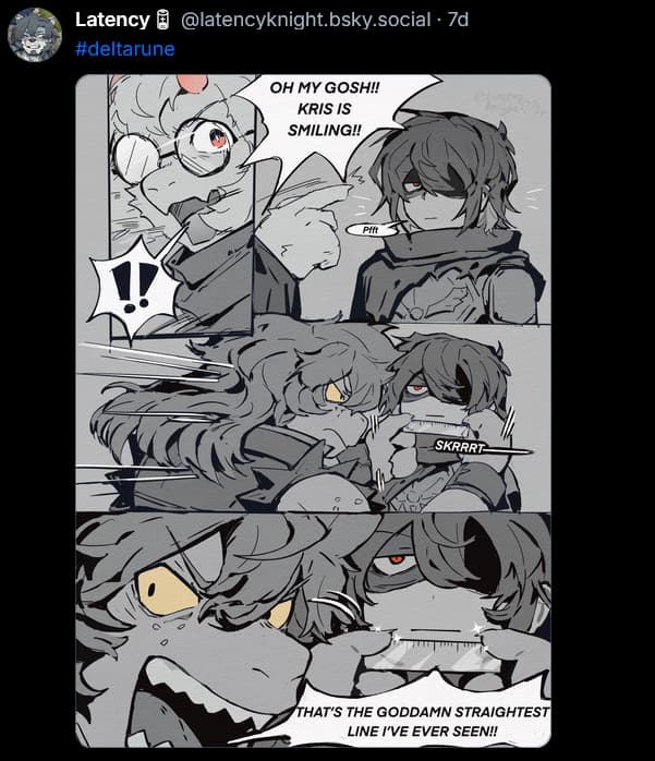 Also i haven’t played past the first chapter of Deltarune and i did that back when it first came out as a survey program. ive enjoyed it totally secondhand since then. i just wanted to admit that so you know that 1. im a huge poseur 2. when i play all of it for real my inevitable gushing posts are going to be 100% authentic