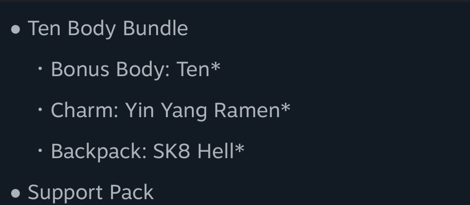 The most expensive comes with the Ten Body Pack, which is not Ten Body Types, but a Body Pack named Ten.
