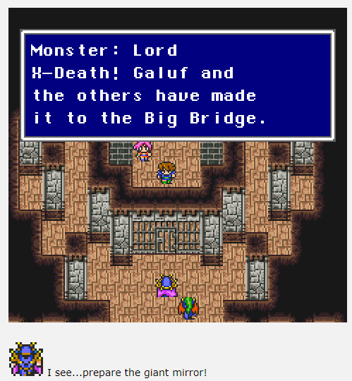 How Final Fantasy 5 goes for “character tragically sacrifices themselves to save the team” in like 10 different cutscenes over the course of the game, and not one of those scenes actually lands