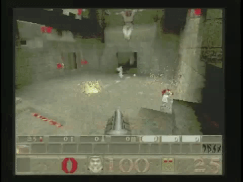 this depiction of a ROCKET BATTLE in quake over the internet from an episode of computer chronicles