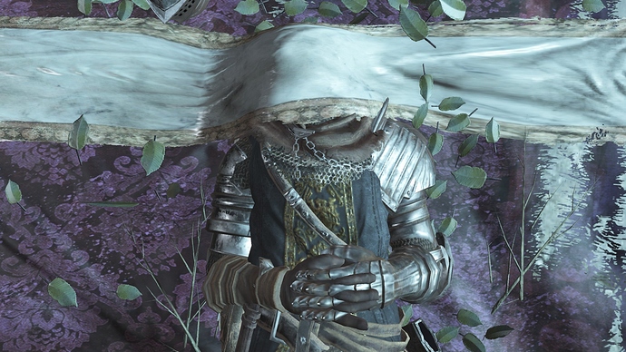 During the betrothal ceremony, Anri’s helmet is set aside and their face is covered with a cloth. How, in this moment, did the developers decide to obscure Anri’s actual head? Did they model the cloth to fit over it? Or maybe model mask the head to be invisible? Nope, tiny head.
