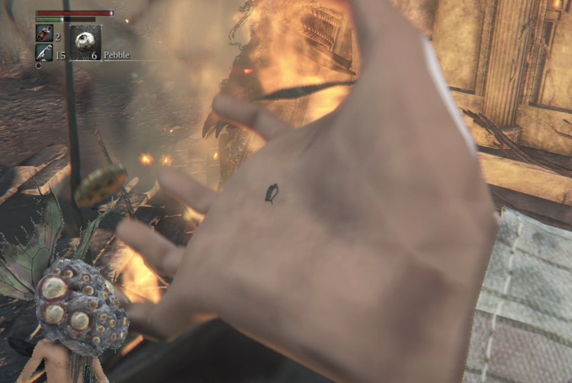 first is that when you perform a visceral attack, use a blood vial, etc in Bloodborne, anything where your character appears to dematerialize their weapon back into hammerspace, the game actually just shrinks your weapon down to tiny size for the length of the animation