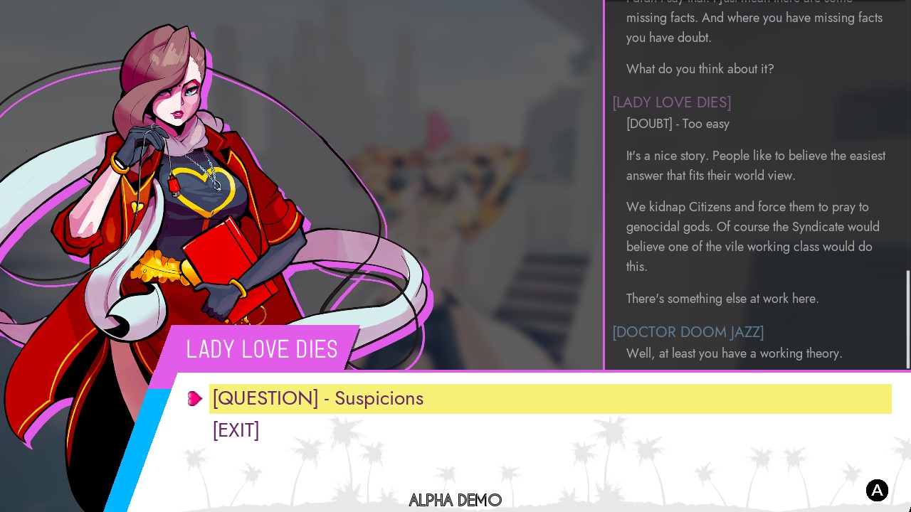 i played too litle of the timed demo (i went to give food to my dogs, then helped family with groceries) to talk on videogames i played, but my mind keep remebering the protagonist name of Paradise Killer that is: