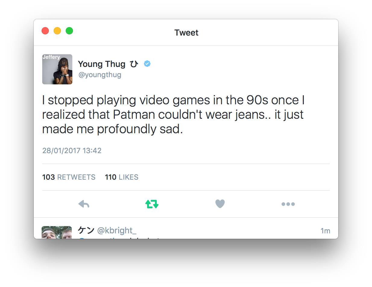I haven’t played Wing Commander 2 since probably 1992 or 1993 and haven’t watched a single second of it and couldn’t even really tell you much about the game at this point but literally for my entire life I’ve heard Jazz say “You Got it Maestro” in my head at least once a week. Every time I want to say some version of “you’ve got it” I have to consciously clip off saying “maestro” at the end. At this point I’m terrified to go find a voice sample and find out how mutated the sample has become in my brain over the course of 27 years.