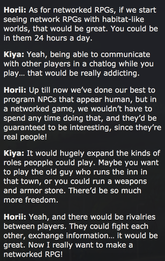 yuji horii and yoshio kiyo (xanadu) talking about how they want to make mmos in 1987 (!)