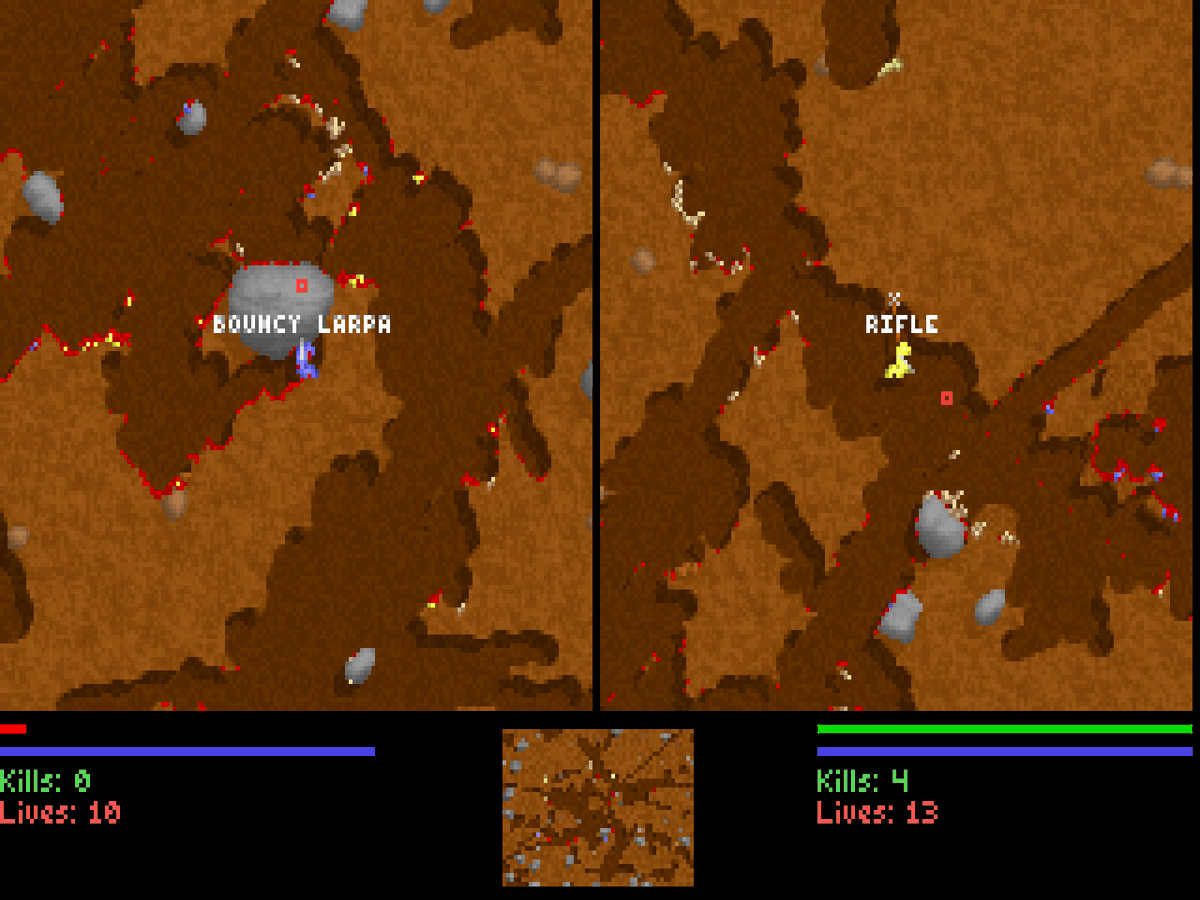 my copy of liero was from my mate who always played with 0% reload speed so i thought the gauss gun was meant to double as a jetpack and the chiquita bombs were meant to flood the screen and cause massive slowdown