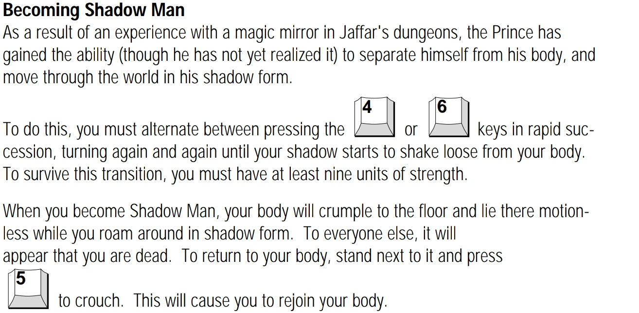 I think about this bizarre mechanic in DOS Prince of Persia 2 a lot. It sounds like some kind of playground rumor but it’s really in the game. It results in permanent max health loss if you complete the level after doing it
