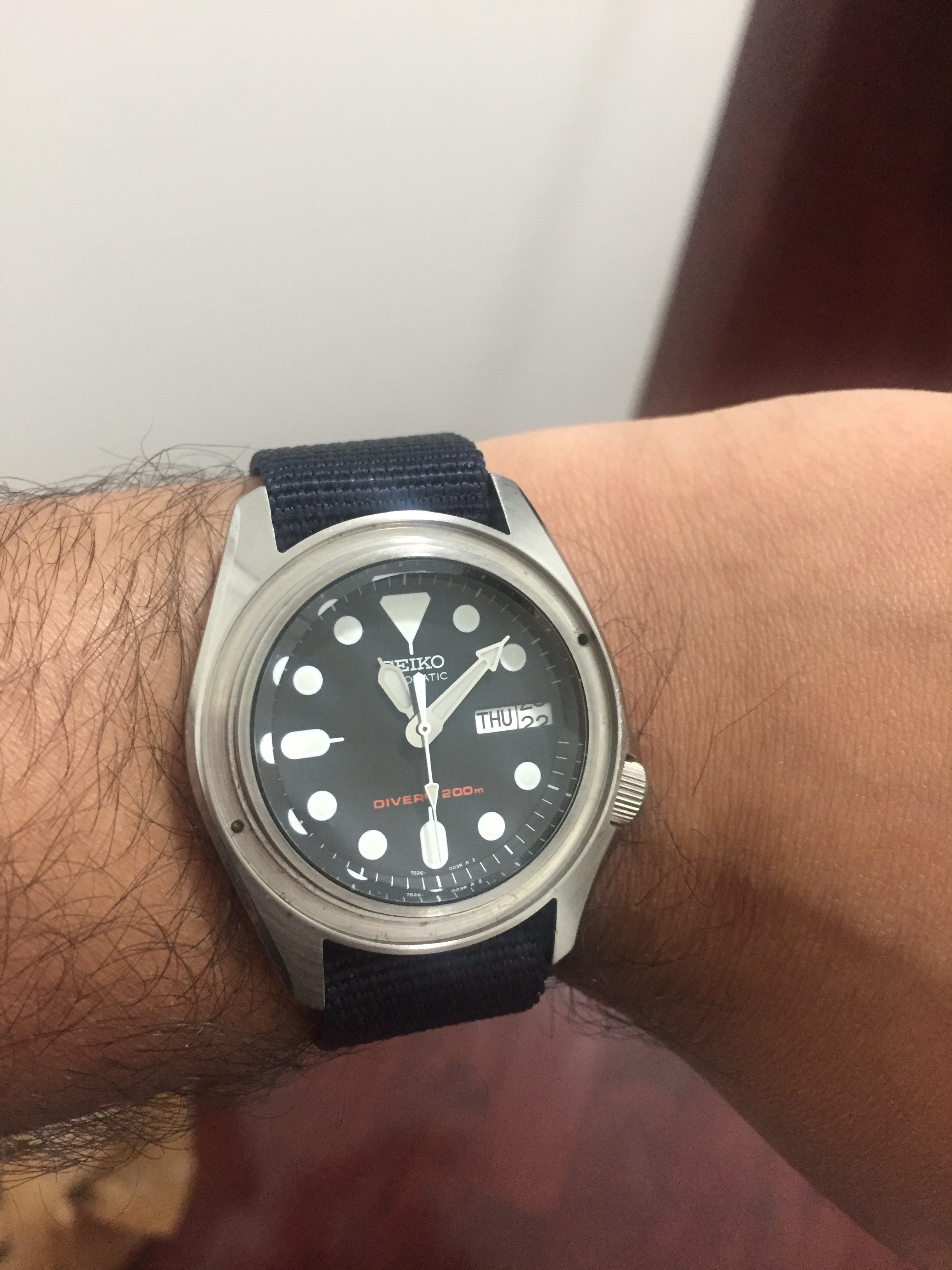 this Erika’s Original MN strap is just beautiful. $60 for a watch strap made out of 1970s Marine Nationale parachute webbing, woof