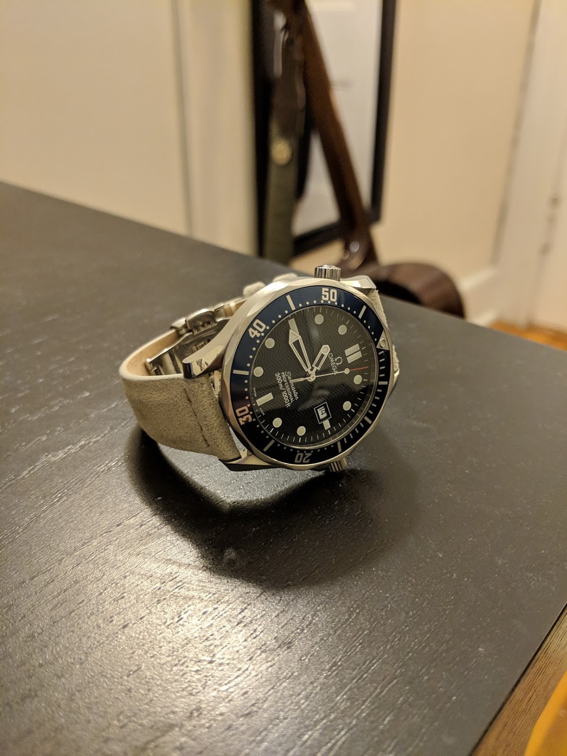 I inherited a very nice watch recently. It feels weird to be wearing it for several reasons. It was on a steel bracelet, but I put it on this suede strap so it’s maybe less ostentatious?