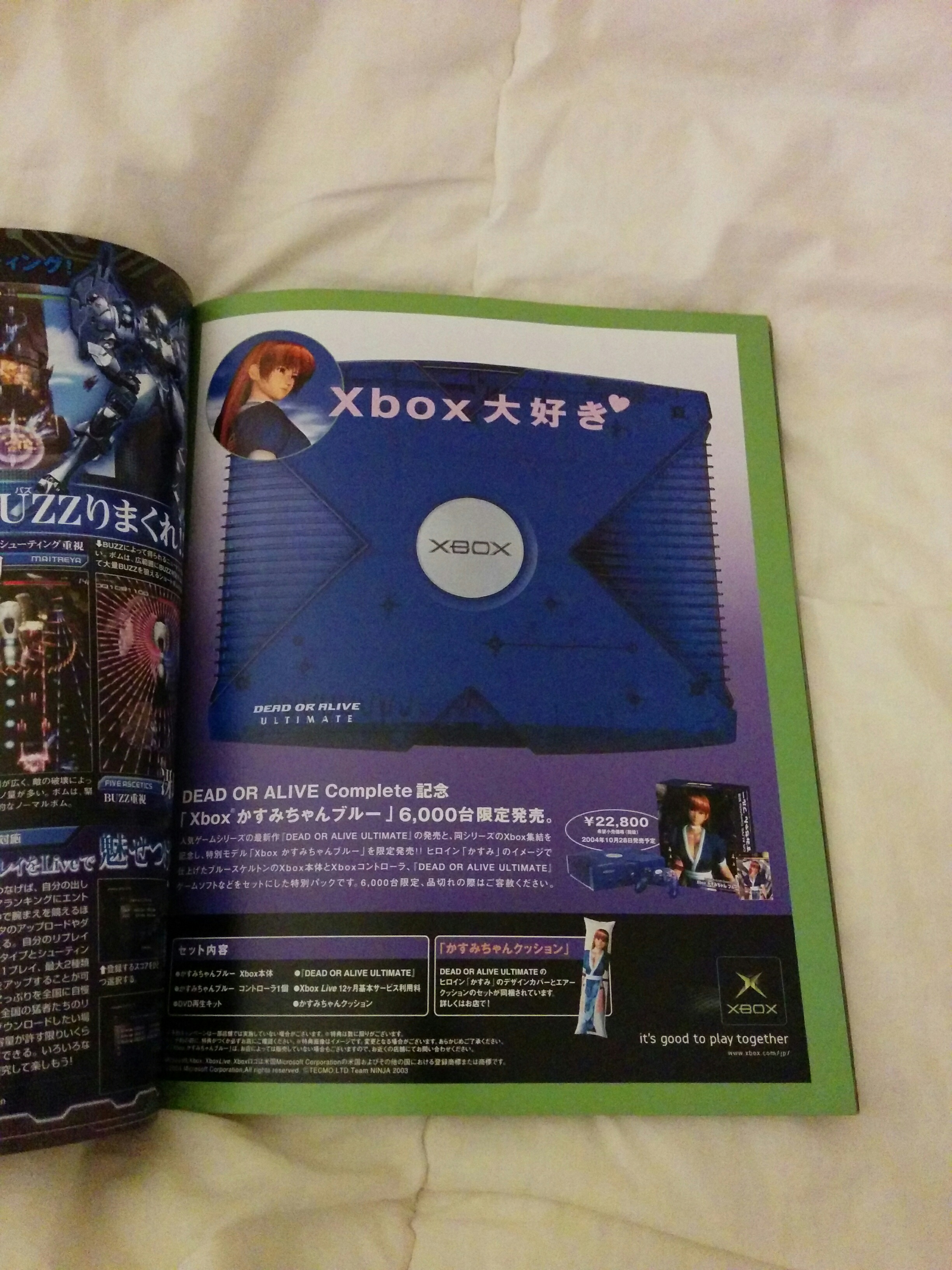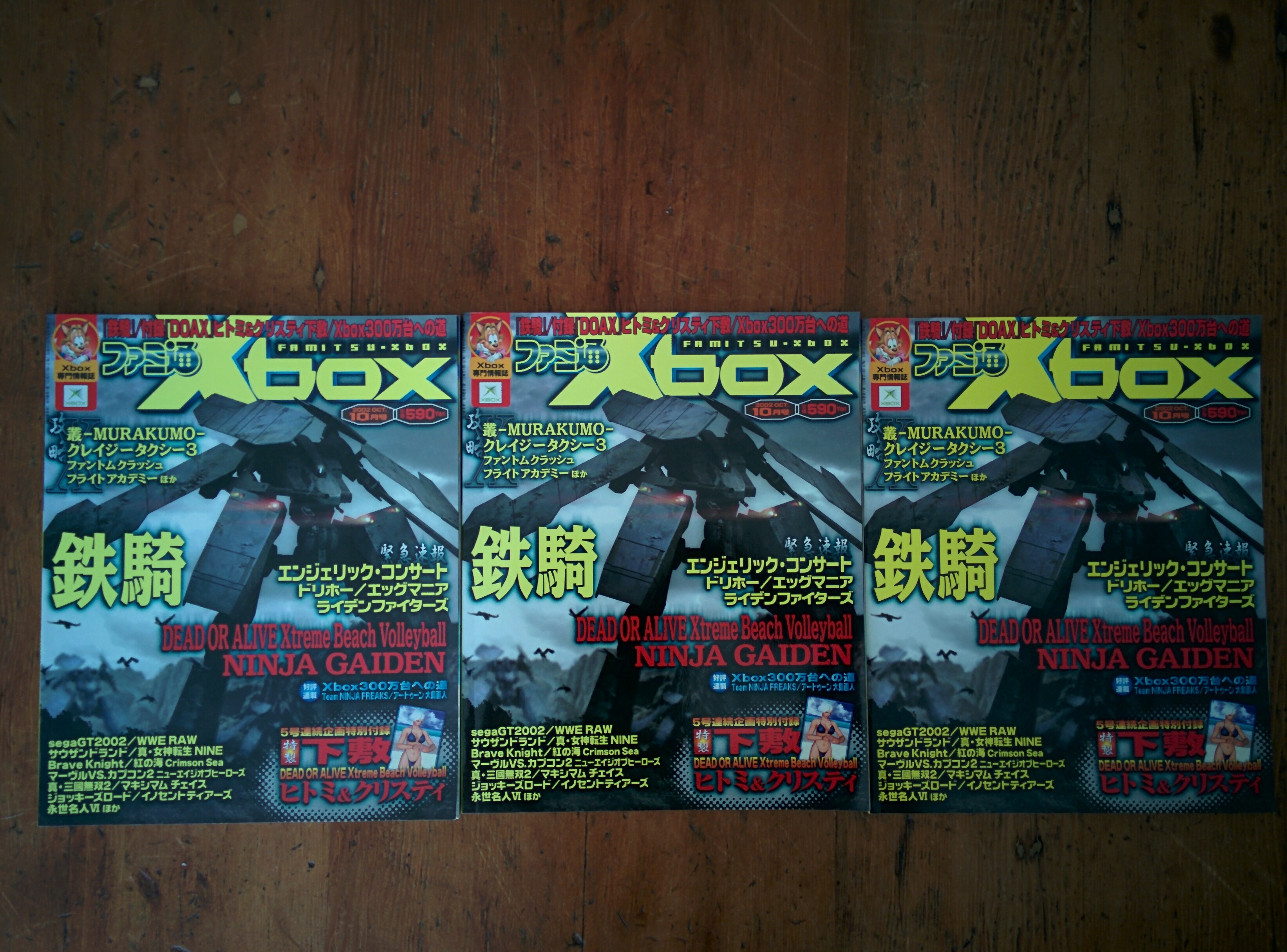 So yeah I’ve decided scanning 40+ magazines in their entirety is way too much work. I’m gonna pivot this project to just scanning all the covers and advertisements. This’ll be way more digestable and people could link it around (visions of Kotaku article “this is how xbox games were marketed in japan”). Then maybe if it gets a lot of attention from like Frank Cifaldi or someone and people send me a million dollars I’ll go back and scan the magazines fully.