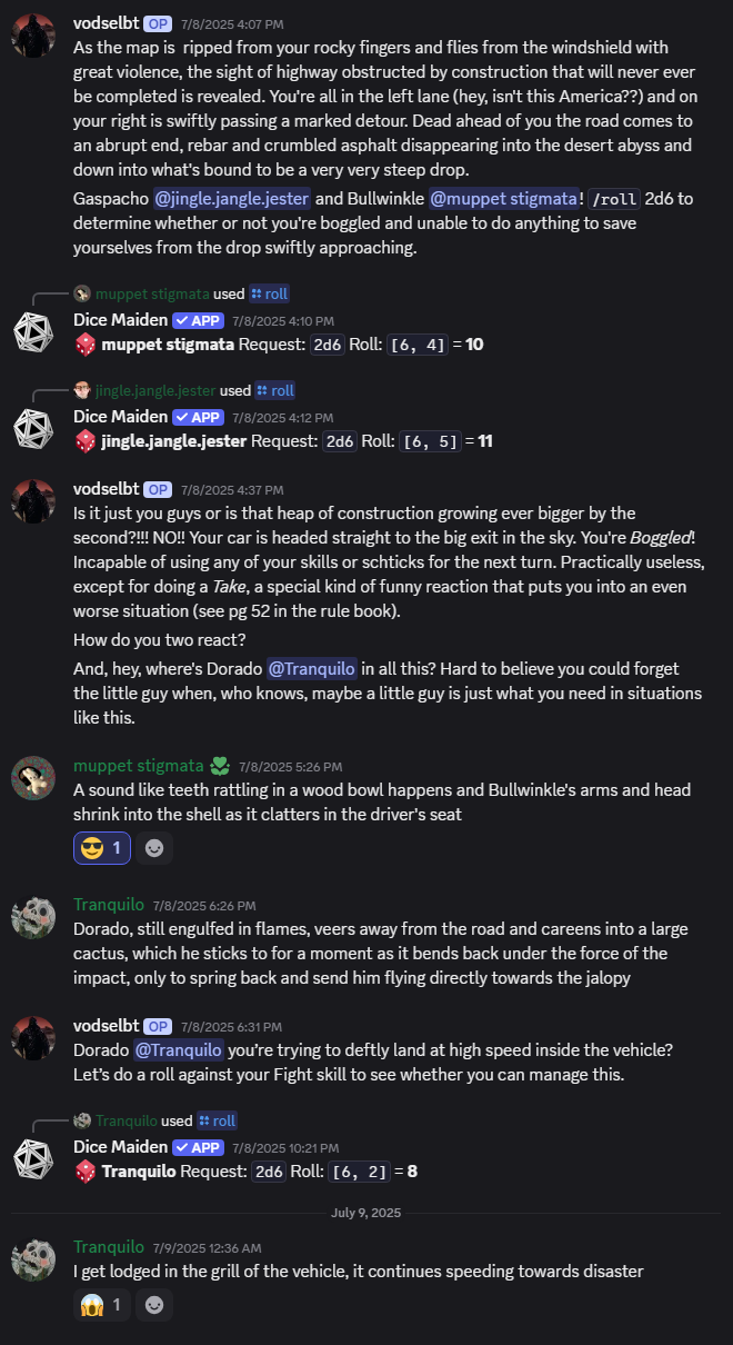 Speaking of the big boss fight, since it concluded the PCs kind of have a chance to breathe and decide what they’re all doing with their lives going forward (for example one of them decided to form a filthcore noise band), so I offered to make like a little summary of all the hooks that are still dangling. Interest was expressed so I wrote it up… it took longer than actually prepping a session lol. Still, after 32 sessions, it was kind of cool to see it all put together like this. It’s just fantasy rpg junk but it grew up organically and I’m proud of it. I love my players for making this thing breathe!
