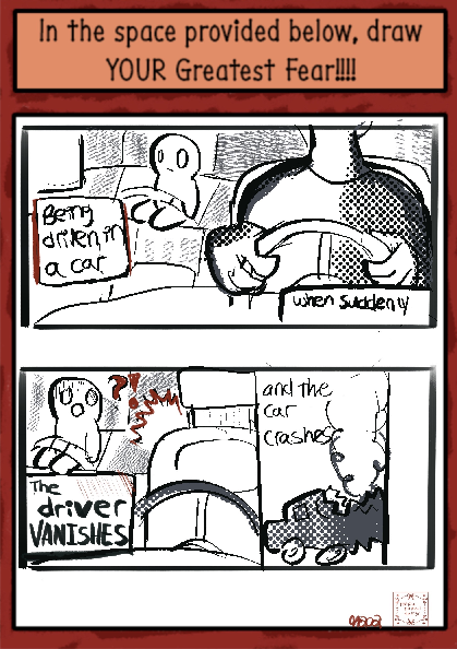 I now invite YOU, the viewer, to fill in my prompt at the end of the zine with YOUR greatest fear!