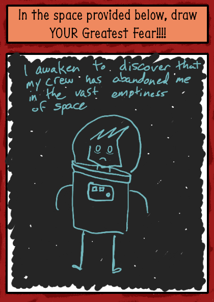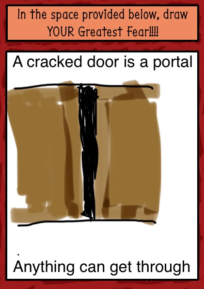Note: Do not actually send or post you true greatest fear in this world. Please consult the zine to see such as Donkey Kong throwing a barrel or a bee landing on ye. These are what I would hazard to call “fun” “goofs” please do not try to draw entropy or prion disease.