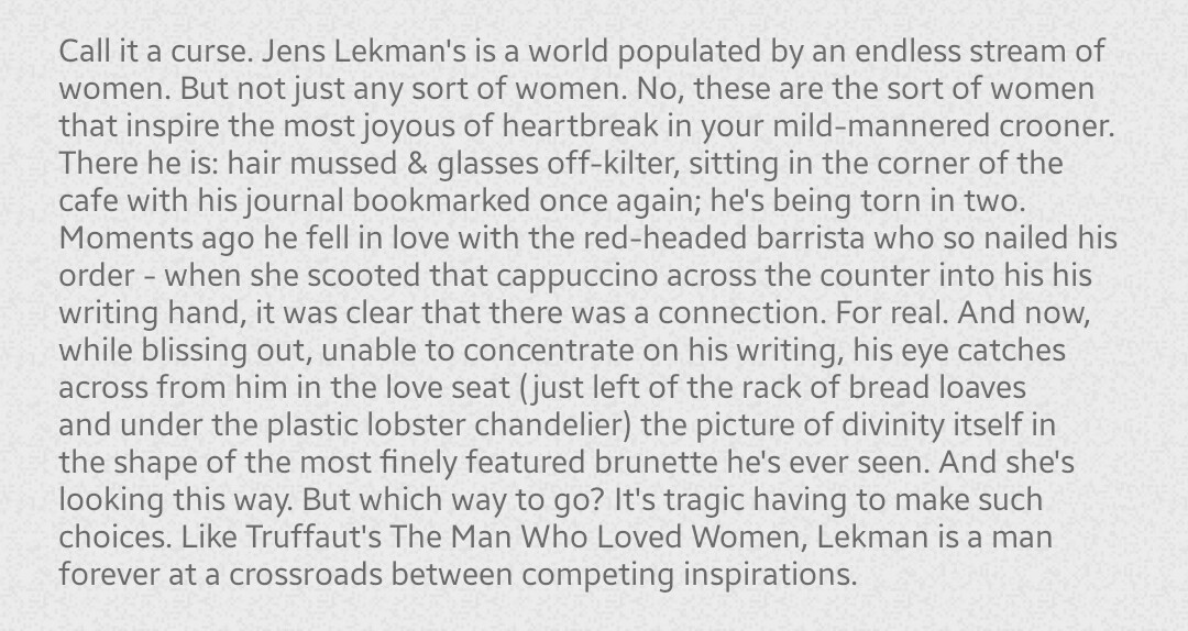 was browsing jens lekmanâs bandcamp a bit ago and i love the guy but i had to screenshot this blurb because of how bad it is